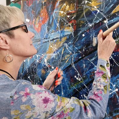 She thought her world had just ended when she was placed in the hospital for two weeks in 2016. She had lost her eyesight due to migraines. After four weeks and regaining 70% of her vision, she vowed never take life for granted. Determined to enjoy the beauty of the world surrounding her, she began hiking, kayaking, taking in all the colors and textures that nature freely gives us. Studying great Master artists including Vincent Van Gogh, Jackson Pollock, William De Kooning, Helen Frankenthaler, and Grace Hartigan gave her inspiration to follow her dreams.